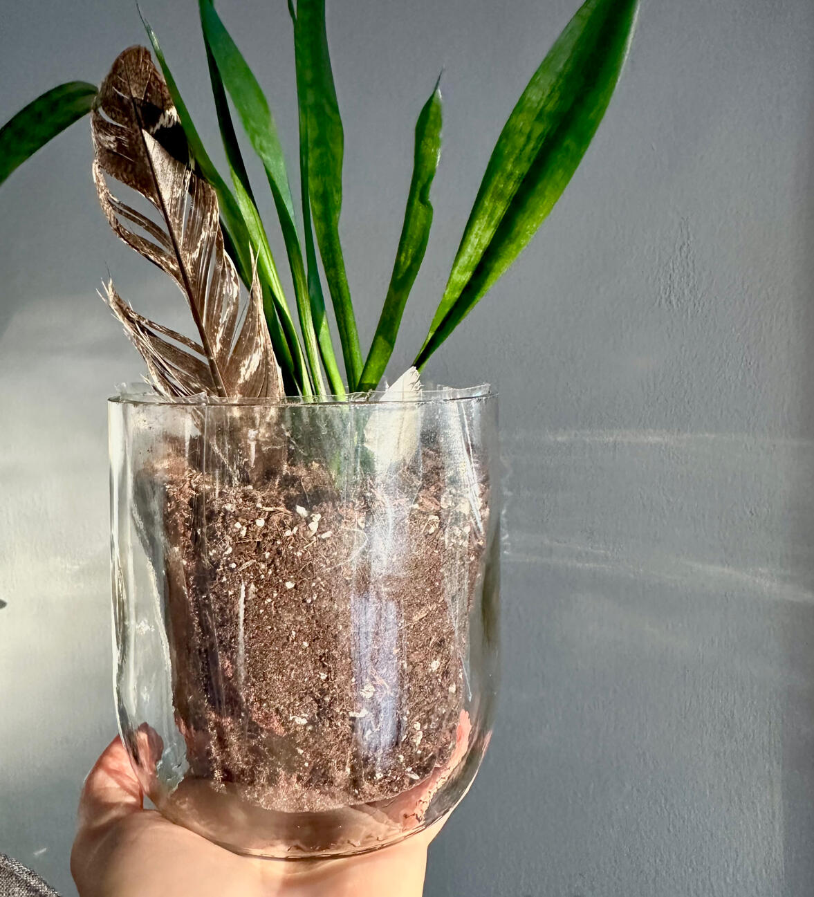 If you throw your glass away it just sits in the land fill; up side to that is glass does not leach harmful chemicals into our planet the way plastic does--BUT--it does contribute to taking up space in our landfills which can cause run off and then harms the planet. We want to avoid throwing things in our landfills as much as we can, and glass is a very easy material to find new life for.